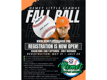 Hemet Little League Baseball & Softball 3707 Mustang Way Hemet, California 92545